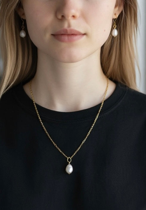 Barock Keshi Perlen Schmuckset – 925 Sterling Silber 18k vergoldet | Halskette 50cm & Ohrringe | Hypoallergen | Nickelfrei