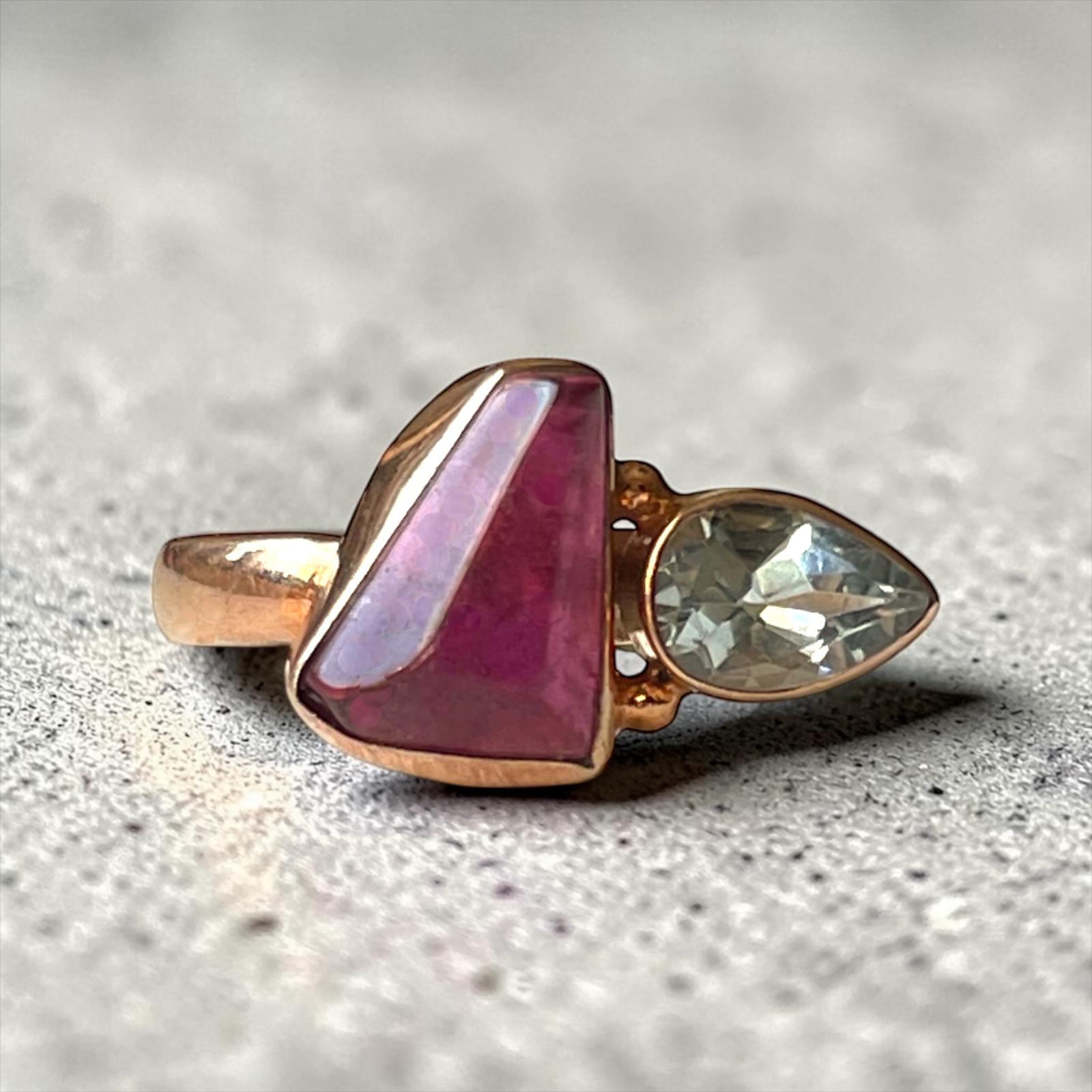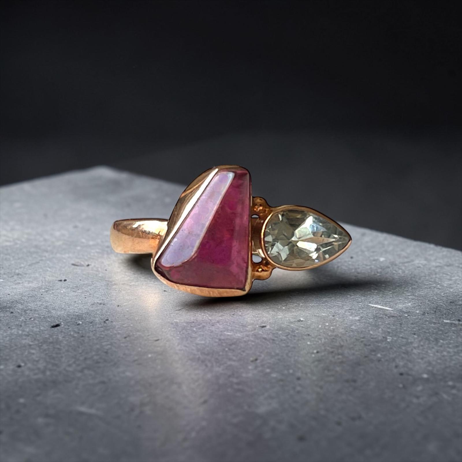 Ein Statement der Eleganz: Designer-Ring in Roségold mit aufregendem Farbkontrast