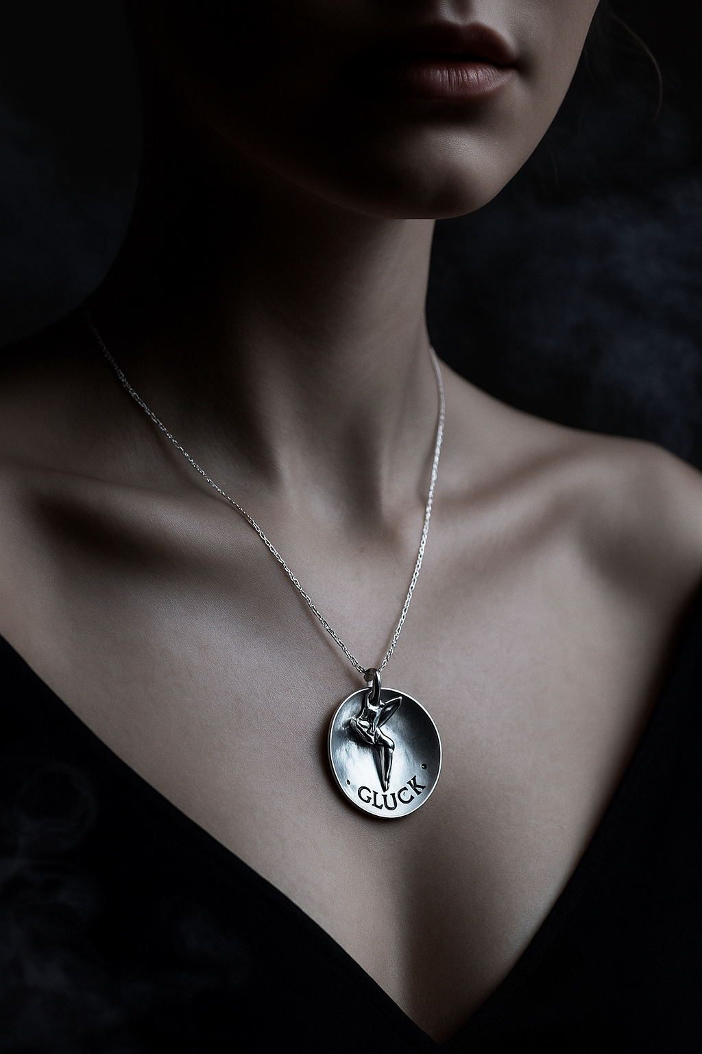 Glück Gravurkette mit Fee Anhänger – 925 Silber Kette 60cm | „Glück“-Mantra Gravur | Hypoallergen & Nickelfrei