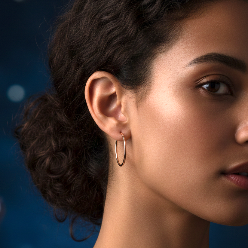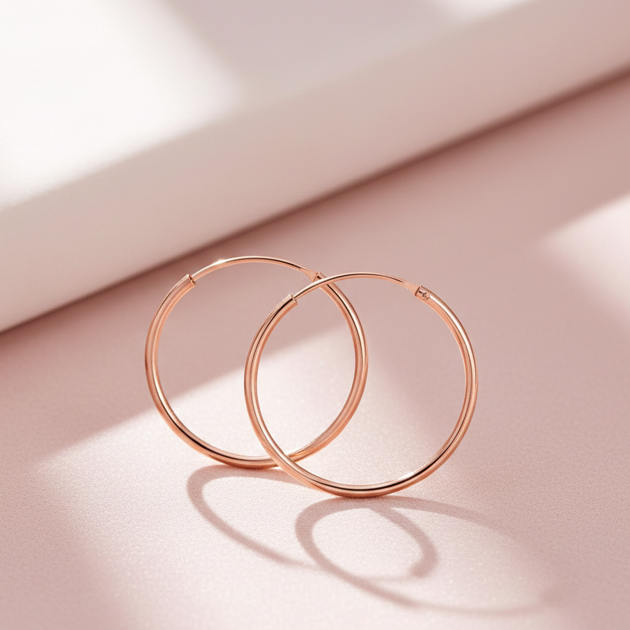 Entdecken Sie die elegante Schönheit der klassischen Creolen aus 925 Sterling Silber, plattiert mit 18K Roségold. Diese zarten, 25 mm Durchmesser großen Ohrringe mit einem 1.1 mm Rundrohr-Design sind die perfekte Ergänzung zu jedem Outfit. Die hochwertige Roségoldplattierung verleiht diesen Ohrringen einen luxuriösen Glanz und macht sie ideal für den täglichen Gebrauch oder besondere Anlässe.